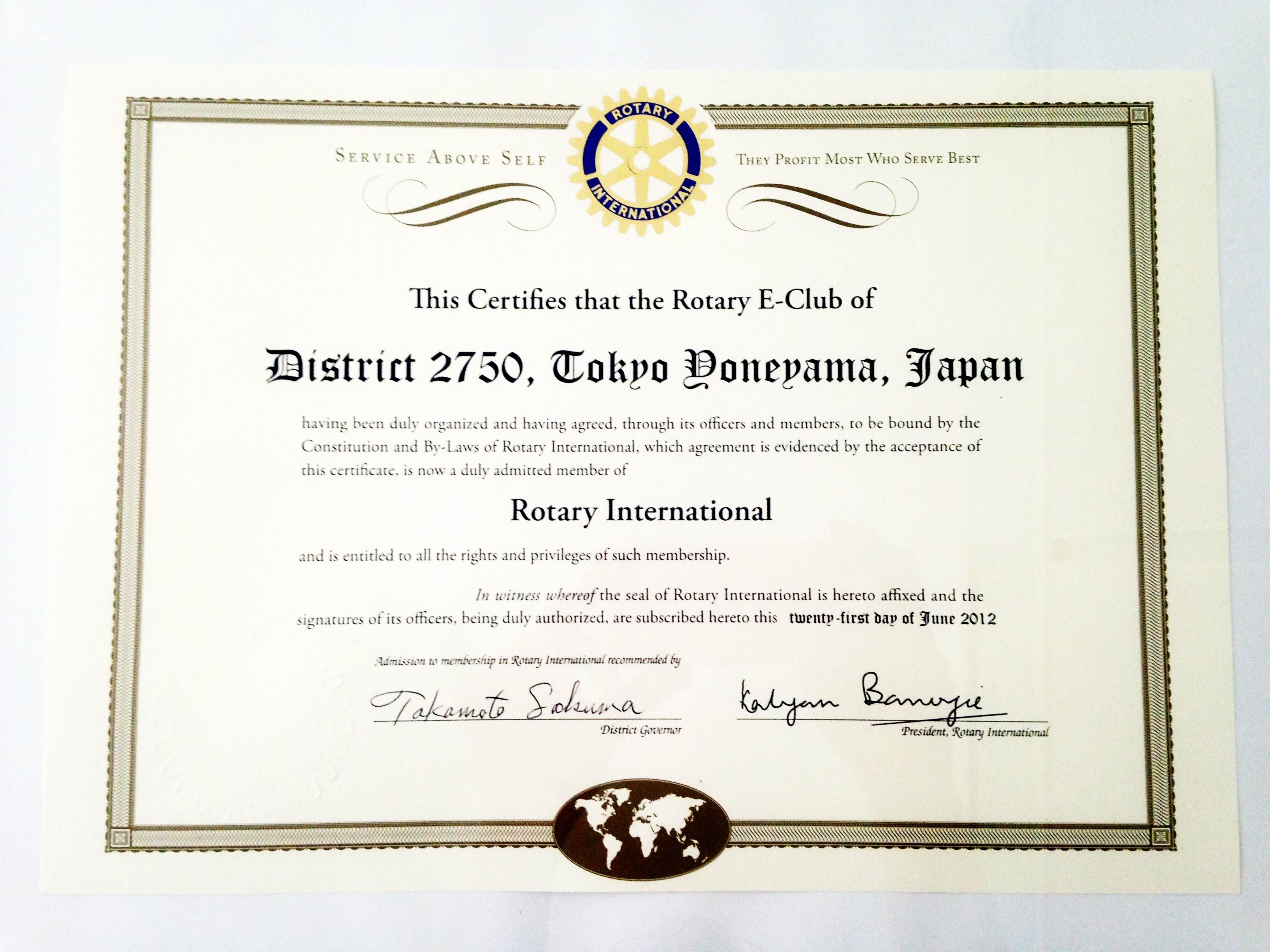 国際ロータリー加盟承認日:2012年6月21日