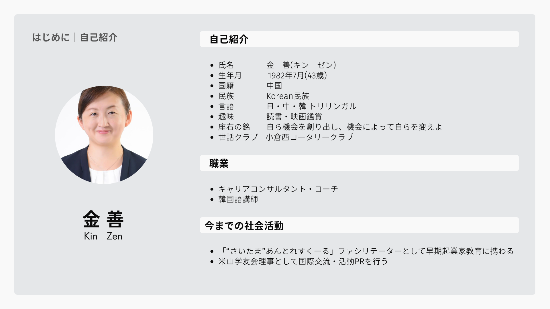 「ライブチャット例会」 イニシエーションスピーチ 会員 金善